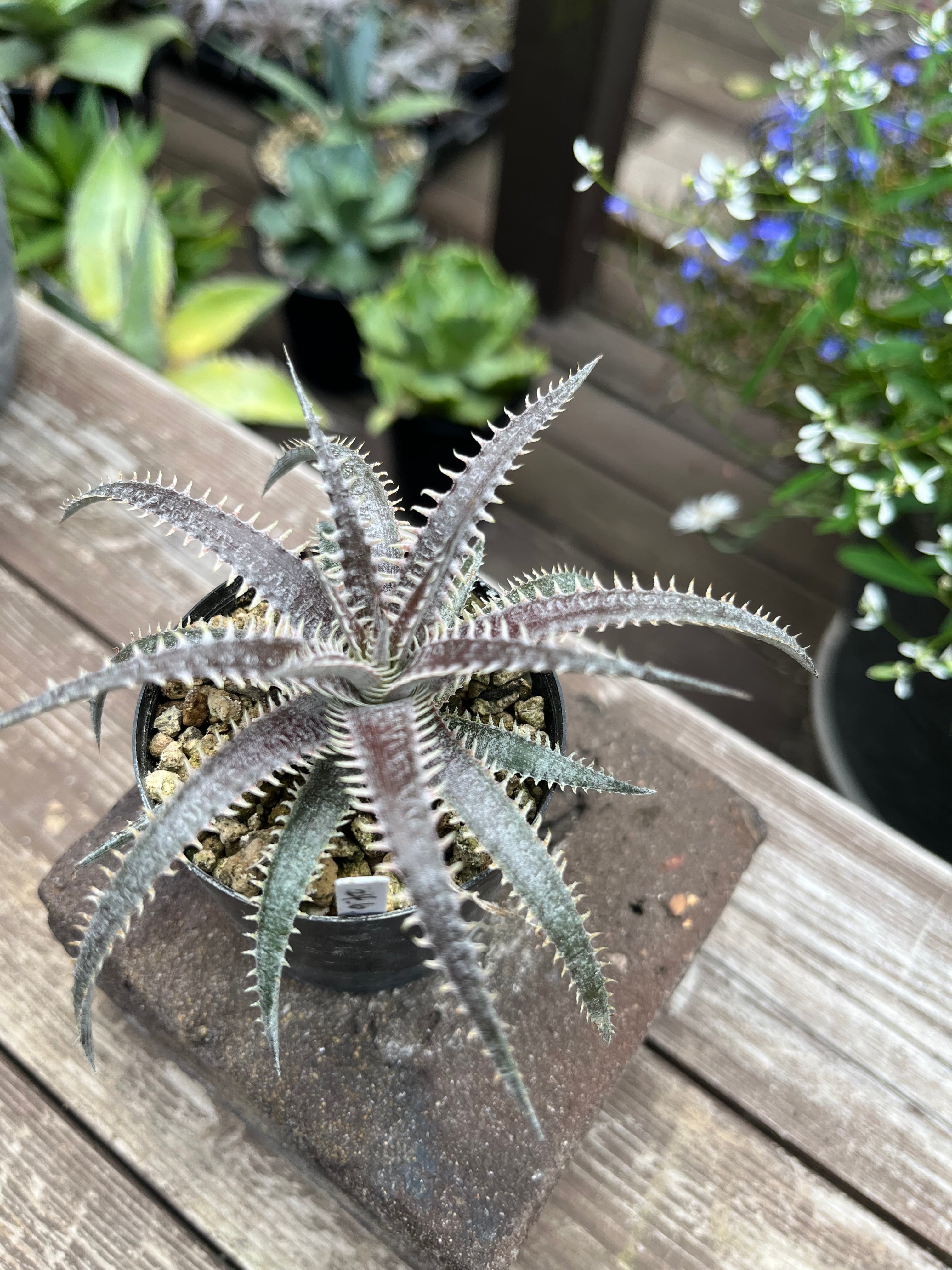 細葉に細かいピッチの鋸歯が連なる美しいディッキア。Bill Baker氏のハイブリッドにあとからシリーズ名がついたとのこと。XXX-2はあまり流通していない珍しいナンバーです。