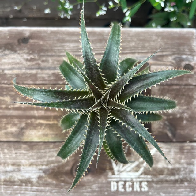 Dyckia original hybrid seedling ♀trucking code FWF × ‘Winters Edge’ ♂'Arizona’ × goehringii 2023年秋に播種した実生です。未繁殖オンリーワンの成長を楽しめます。 薄くトリコームの乗った葉に細かいピッチではっきりとした鋸歯が並ぶディッキア。 サイズは写真をご参照ください。 ●抜き苗、第四種郵便にて発送致します。鉢、土は付きません。また、補償等はございませんので、ご注意ください。 ●素人が趣味で育てている物です。完璧を求められる方はご購入をお控えください。 ● 注意して梱包しますが、葉、棘が折れる可能性もございますので予めご了承下さい。 ●半日陰で管理しておりますので、急に直射日光下に置くと葉焼けの恐れがありますので、少しずつ日光に慣らすことをお勧めします。また、抜き苗のため、根がいったん乾きます。植え付け後は根が動き出すまでしばらく日陰で養生をお勧めします。